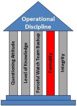 Formality has broad-reaching implications in an organization’s journey to Operational Discipline and is applicable in countless ways for every employee. Because the goal is to “do the right thing, the right way, every time,” the basis for Formality is built on the foundation of employees’ understanding and accepting that they are part of something bigger than themselves. They are part of a company that is made up of other people, facilities, equipment, processes and procedures that have to work in concert with one another to deliver products to customers and returns to shareholders.